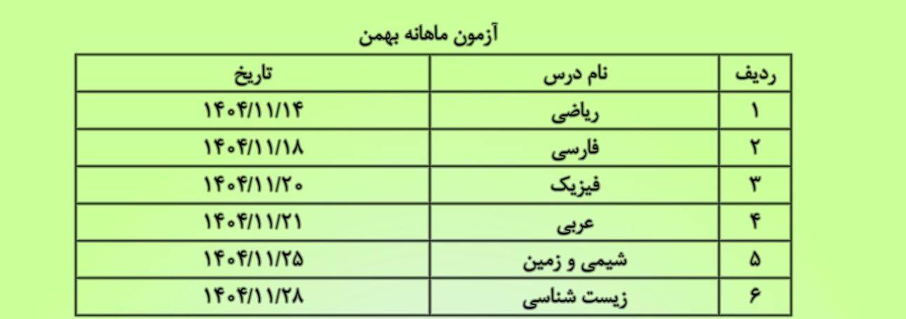برای مشاهده و دانلود برنامه آزمون های ماهانه بهمن ماه کلیلک کنید.
